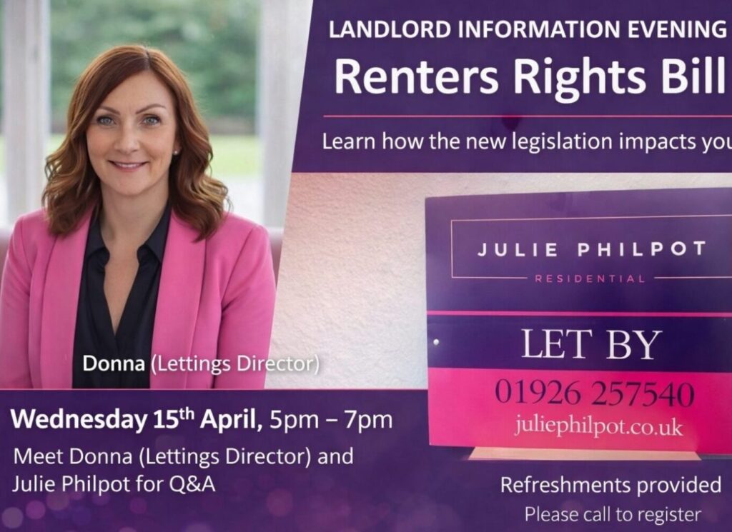 Landlords Invited to Information Evening Ahead of New Renters Rights Bill Donna, Lettings Director at Julie Philpot Residential would like to invite local landlords to attend a dedicated information evening to better understand the upcoming changes introduced by the new Renters Rights Bill, which comes into force on 1st May. The event, taking […]